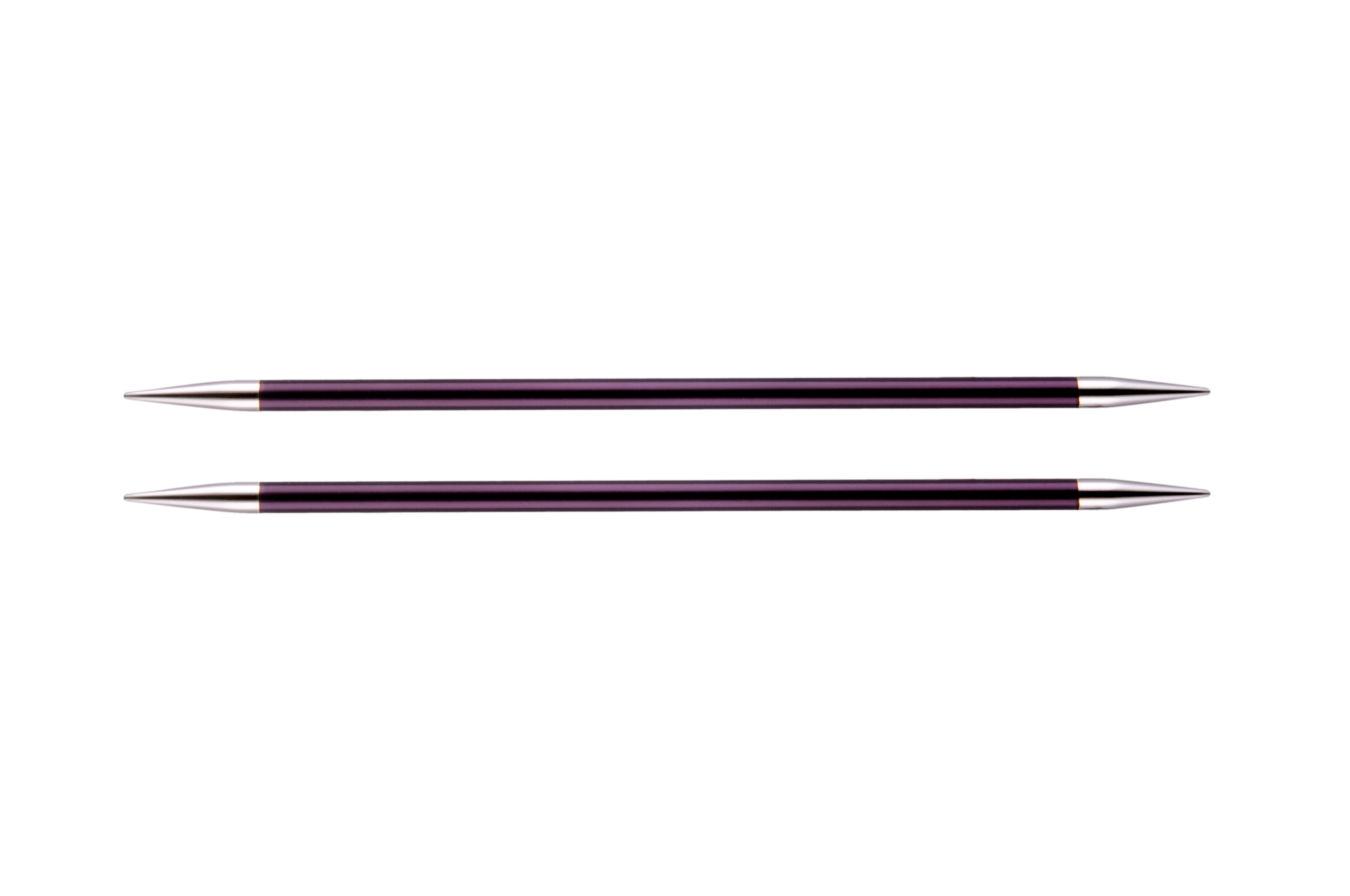 Knit Pro Zing Nadelspiel Stärke: 6,00 mm Farbe: Purple Velvet ZING von Knit Pro in metallisch schimmernden Farbschattierungen, jede einer bestimmten Größe zugeordnet. Wunderschöne silbrige Spitzen und ein perfektes Finish....diese Nadeln werden garantiert zum Modeakzent anspruchsvoller Strickerinnen!