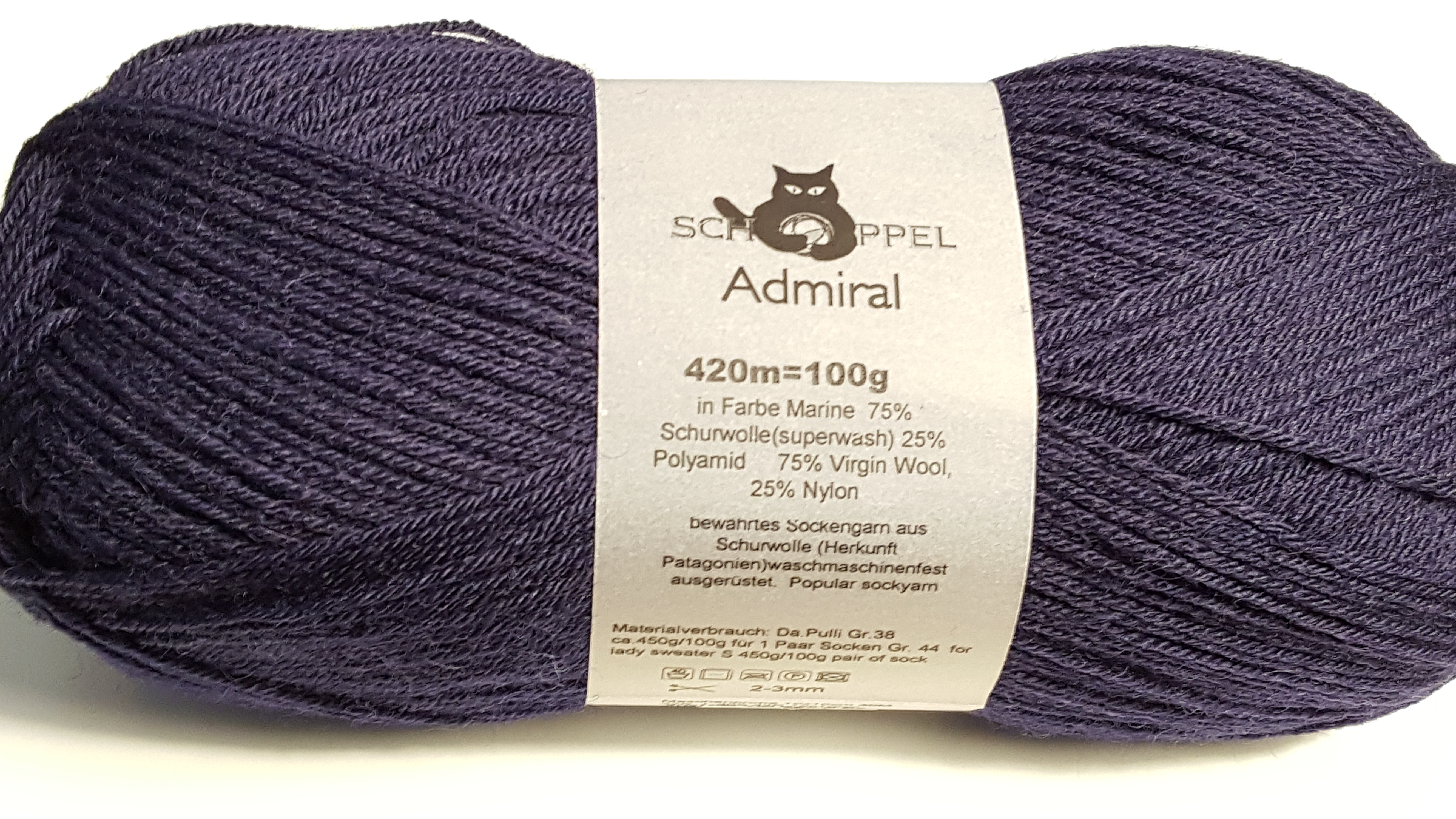 Admiral besteht aus 75% reiner Schurwolle und 25% biologisch abbaubares Polyamid. Aus diesem wundervollen Garn stricken Sie Socken, um die sich Ihre Familie und Bekannten reißen werden. Ein 100g Knäuel Admiral reicht genau für ein Paar Socken.