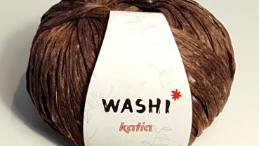 Katia Washi Material: 70% Polyester / 30% Viskose 100g Knäuel / Lauflänge:100 Meter Nadelstärke: 8-12 mm Maschenprobe: 10x10 cm 10 Maschen / 12 Reihen liegend trocknen Farbe: 105 Braun