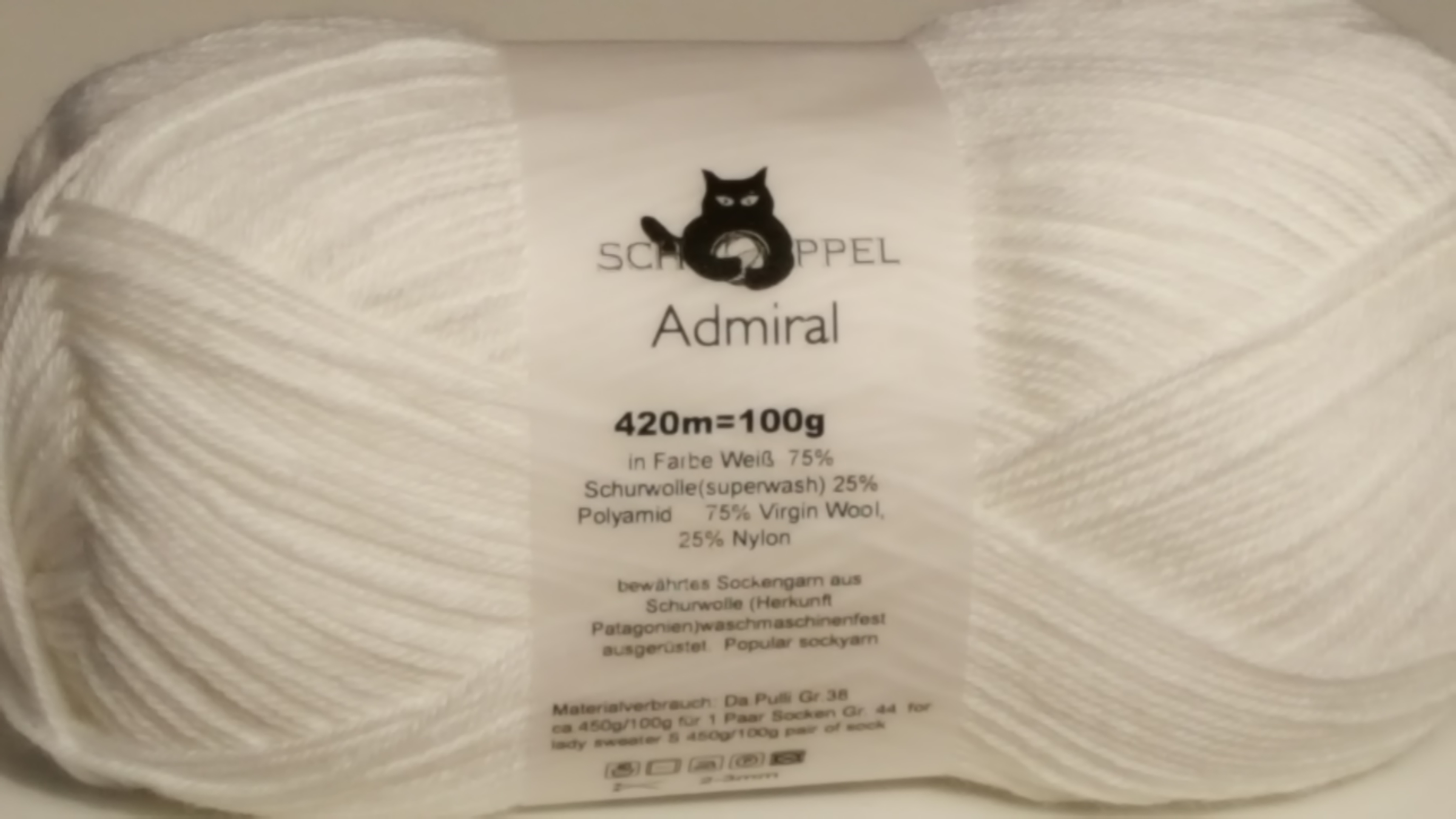 Admiral besteht aus 75% reiner Schurwolle und 25% Nylon. Aus diesem wundervollen Garn stricken Sie Socken, um die sich Ihre Familie und Bekannten reißen werden. Ein 100g Knäuel Admiral reicht genau für ein Paar Socken.