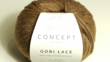 Katia Concept Gobi Lace Material: 73% Merino Extrafine Superwash 15% Kamel 12% Polyamid 25 g Knäuel / Lauflänge: 160 Meter Nadelstärke:4-5 mm Maschenprobe 10x10 cm: 21 Maschen 29 Reihen Farbe: 105 Camel Garn vom Typ Catenella mit der exklusiven Faser Baby Kamel, das durch seine Ergiebigkeit jede Handarbeiterin fasziniert. "BABY CAMEL & MERINO EXTRAFINE"