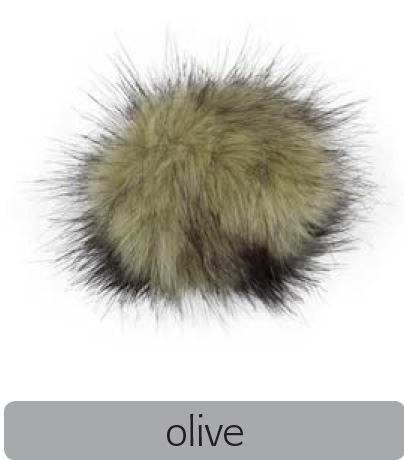 Schöne Kunst Fell Bommel 100 % Acryl. Aus Tierschutzgründen kein Echtfell! Farbe: olive Sehr hochwertige Optik Befestigung mit Druckknopf ist dabei