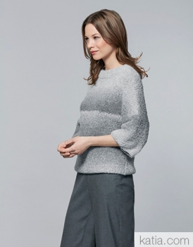 Katia Prisma Material:41% Viskose 41% Wolle 17% Polyamid 1% Elasthan 50 g Knäuel Lauflänge: 200 Meter Nadelstärke: 4,5 - 5 mm Maschenprobe 10x10cm: 17M 25R Farbe: 102 Hellgrau