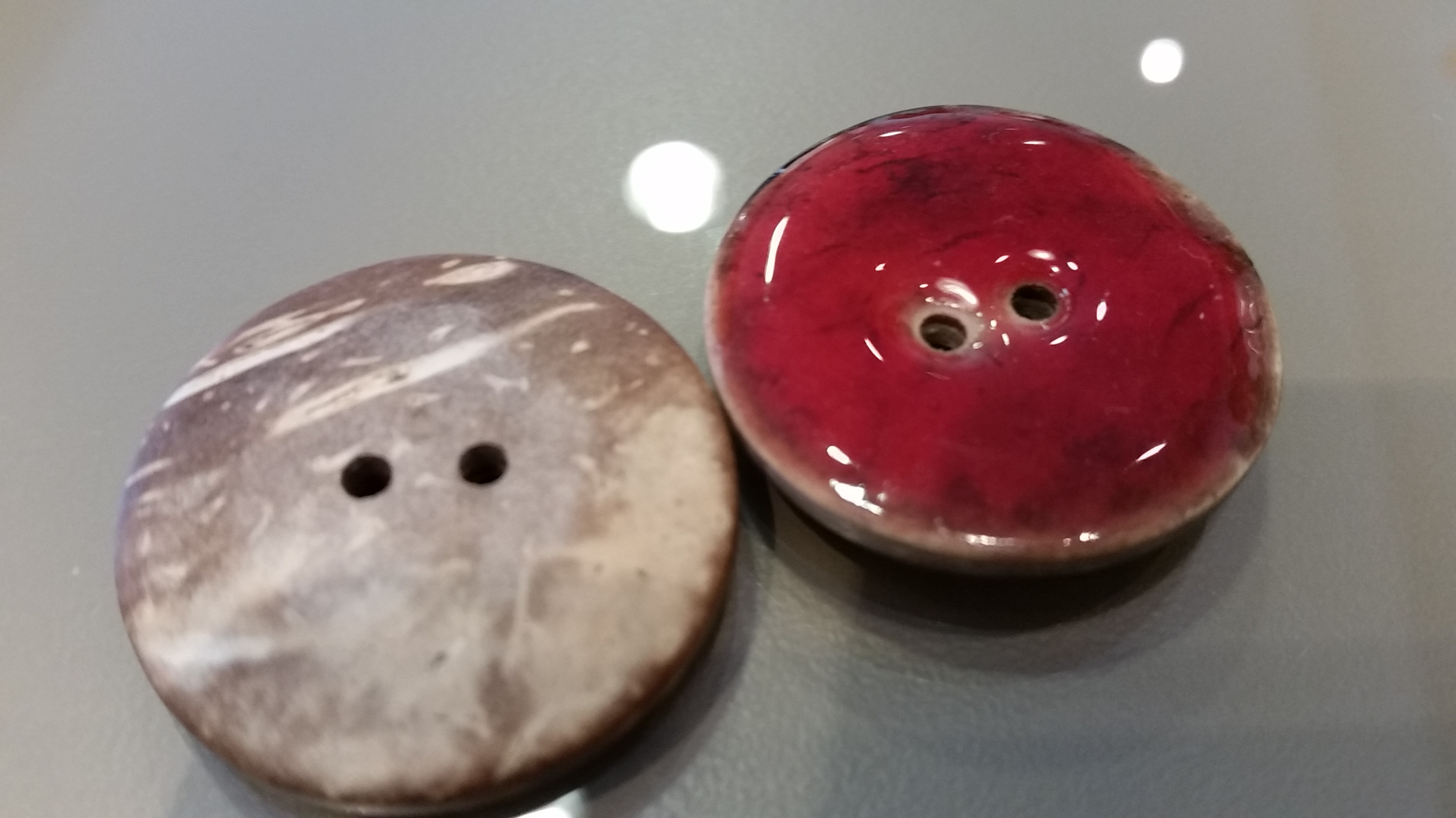Knopf nicht nur zum knöpfen JIM KNOPF Material: Cocos mit Epoxidharz überzogen/ Keramik Effekt Größe in mm: 48 Farbe:dunkelrot 07