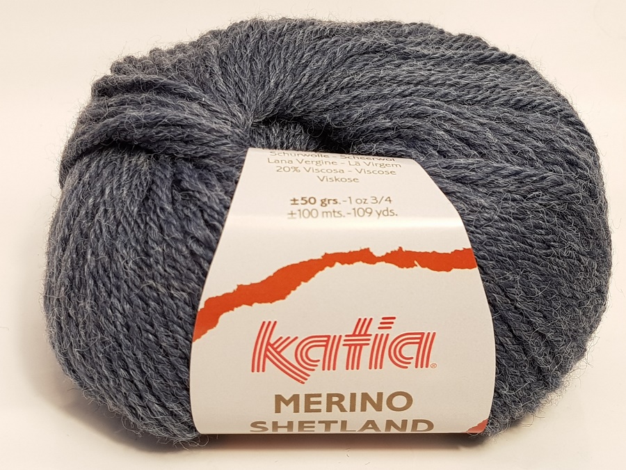 Katia Merino Shetland Material:80% Schurwolle / 20% Viskose 50 g Knäuel, Lauflänge:100 Meter Nadelstärke: 4-4,50 mm Maschenprobe 10x10 cm: 17 MA/23 R Farbe: 56 Blau Merino Shetland ist genau die richtige Wahl für gemusterte Pullis für Kinder und Erwachsene. Winterliche Strickjacken und Kindermäntel werden mit diesem Garn herrlich warm und bequem. Die sanften Farben von Merino Shetland bieten viele Kombinationsmöglichkeiten für Mützen mit Zopfmuster und strukturierte Schals.