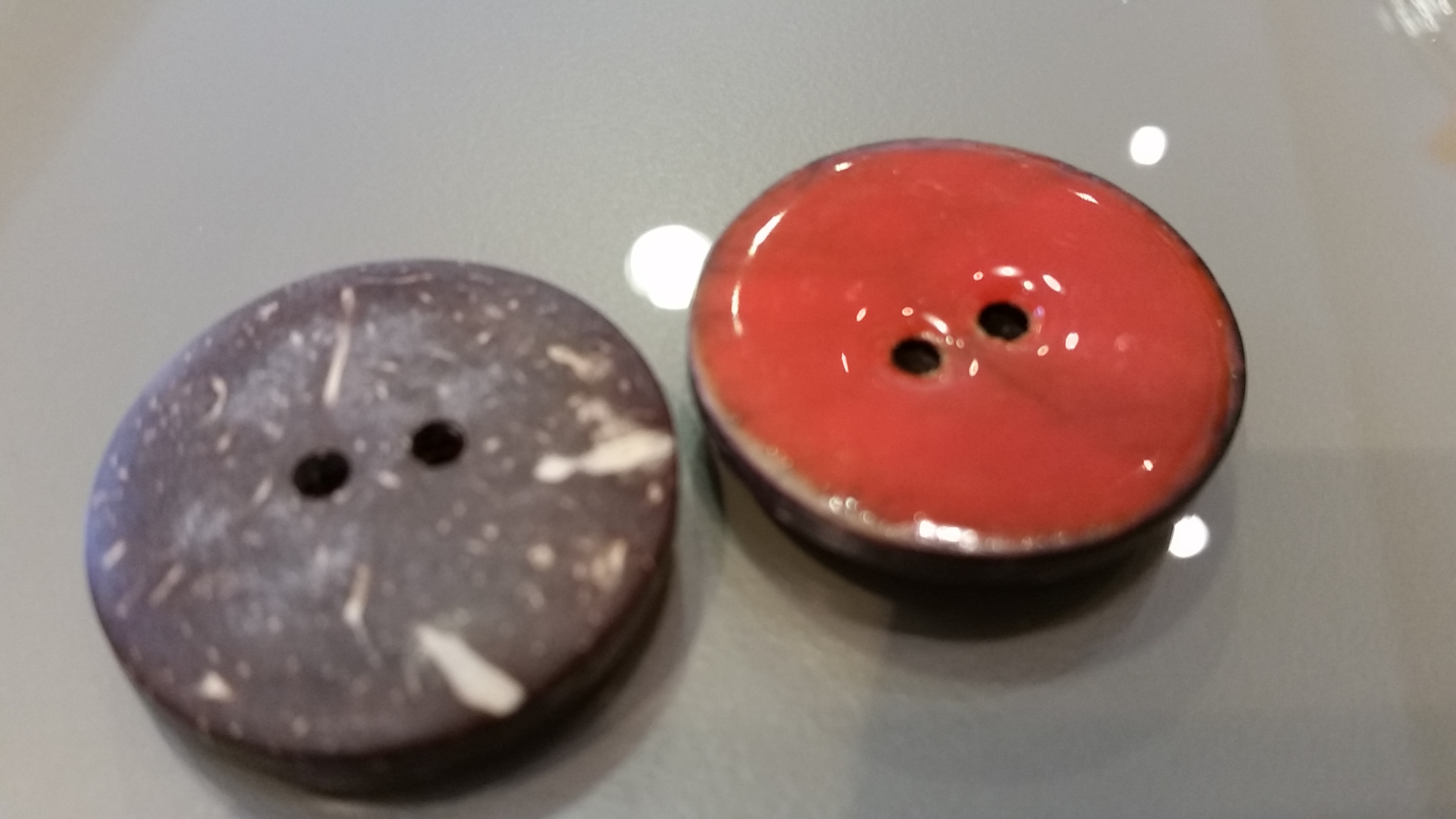Knopf nicht nur zum knöpfen JIM KNOPF Material: Cocos mit Epoxidharz überzogen/ Keramik Effekt Größe in mm: 48 Farbe:orange 08