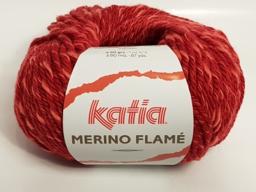 Katia Merino Flamé 50 g Knäuel, Lauflänge:80 Meter Material: 74% Schurwolle - 26% Baumwolle Nadelstärke :4-4,5 mm Maschenprobe 10 x 10 cm: 16 MA/ 22 R Farbe: 110 Weinrot