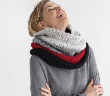 Material: 52% Polyacryl - 34% Mohair - 14% Polyamid 50 g Knäuel, Lauflänge: 75 Meter Nadelstärke. 7,00-8,00mm Maschenprobe 10 x 10 cm: 11 MA/15 R Farbe: 62 Grau