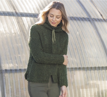 Material: 52% Polyacryl - 34% Mohair - 14% Polyamid 50 g Knäuel, Lauflänge: 75 Meter Nadelstärke. 7,00-8,00mm Maschenprobe 10 x 10 cm: 11 MA/15 R Farbe: 66 Khaki