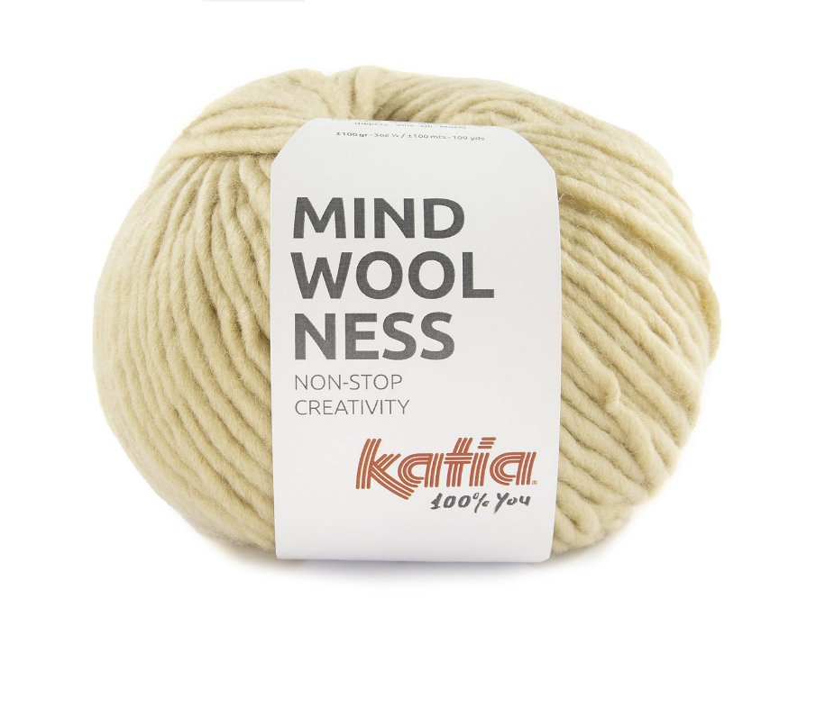 Katia Mindwoolness Dochtgarn 100g Knäuel, Lauflänge: 100 Meter Material: 80% Polyacryl/ 20% Wolle Nadelstärke:8-9mm Maschenprobe 10x10cm: 10M / 15 Rh Farbe: 51 Beige Mindwoolness ist ein dickes Garn mit viel Volumen, das wir entworfen haben, damit du ganz bequem und einfach deine ersten Accessoires und Kleidungsstücke selbstmachen kannst. Lass dich von seiner Weichheit begeistern, entspanne und lerne Stricken und Häkeln in deinem persönlichen Tempo und mit viel Mindwoolness. Erfahre selbst, wie meditativ Handarbeiten sein können und wie sie dich mit deinen Sinnen verbinden. Du brauchst nur ein Paar dicke Nadeln der Stärke 8 oder 9 mm und schon kannst du dich vom Rhythmus der Maschen tragen lassen, während du mit deinen eigenen Händen wunderbare Dinge erschaffst. Folge unseren Anleitungen für Anfänger*innen und entdecke alle positiven Auswirkungen von Handarbeiten.