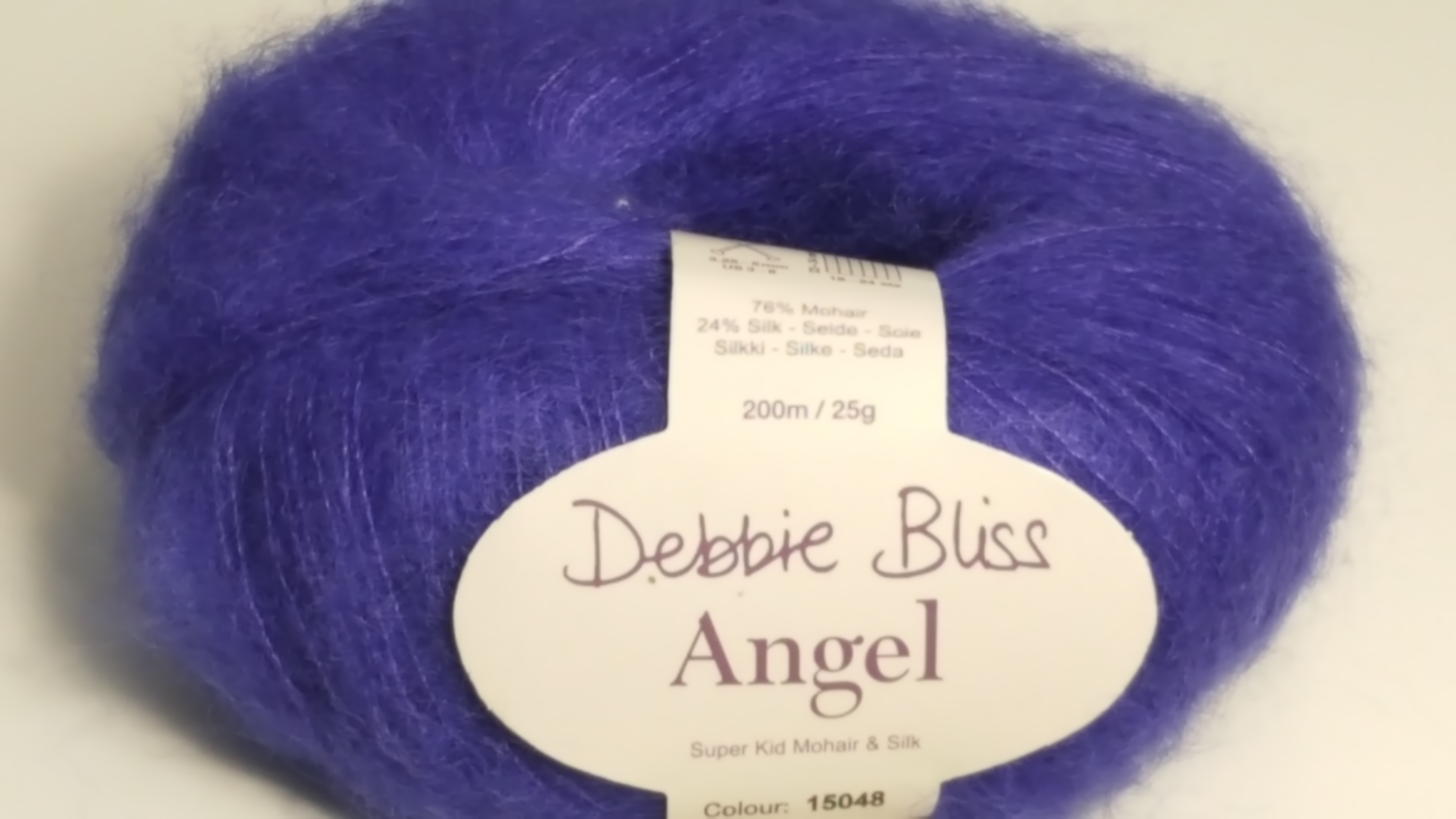 Debbie Bliss Angel Material: 76 % Superkid Mohair / 24 % Seide 25 g Knäuel Lauflänge: 200 Meter Nadelstärke: 2,73,25-5,00 / US: 3-8 Für Lace Teile gerne auch Stärke 5,00-6,00mm Maschenprobe: 10x10mm: 18-24 Maschen / 23-24 Reihen Farbe: 48 ultra marine Ein wunderschönes Garn mit dem gewissen Glanz. Ideal für elegante engmaschige Muster oder hauchfeine Lacemaschen! Leicht verschwommenes Super-Kid-Mohair und plüschig, geschmeidige Seide machen Debbie Bliss Angel wärmer als es scheint.